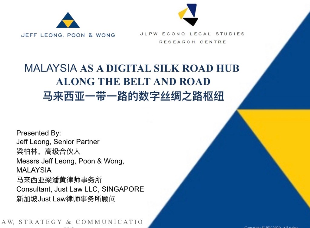 Last Sunday (27 September 2020), in my capacity as Co Chair of the International Professional Services of the Malaysia Bar Council and the Belt And Road Committee of the Law Association For Asia And The Pacific (LAWASIA), I gave an online keynote speech on “Malaysia As A Digital Silk Road Hub Along The Belt And Road” at the Conference on Legal Risks and Countermeasures of International Investment and Trade in Beijing.