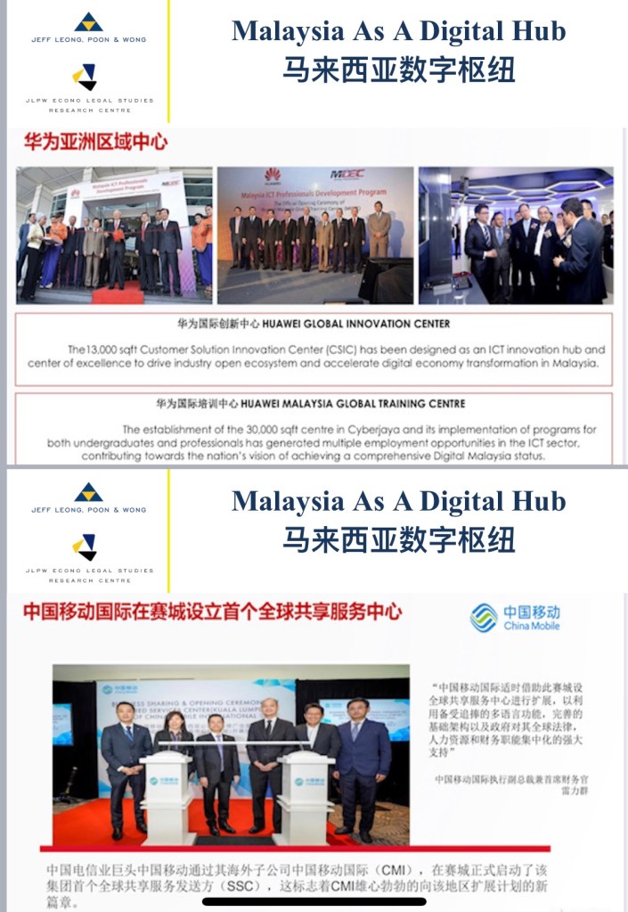 I highlighted Malaysia as a digital hub with Alibaba’s eWTP platform, Huawei’s Innovation Centre and China Mobile’s Global Services Hub located in Kuala Lumpur plus global tech companies’ interest in setting up a regional IT hub in Malaysia.
