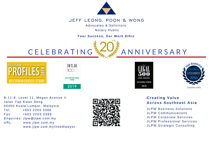 I am also leading our China Services Group and regional JLPW Belt and Road Services Group assisting Chinese companies investing and undertaking Belt and Road projects in Malaysia and other ASEAN countries.