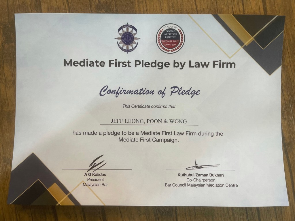 On 18 November 2021, the Minister in charge of Parliament and Law – Dato Sri Dr Haji Wan Junaidi Bin Tuanku Jaafar, launched the Mediate First Pledge by Law Firms Campaign in Malaysia.