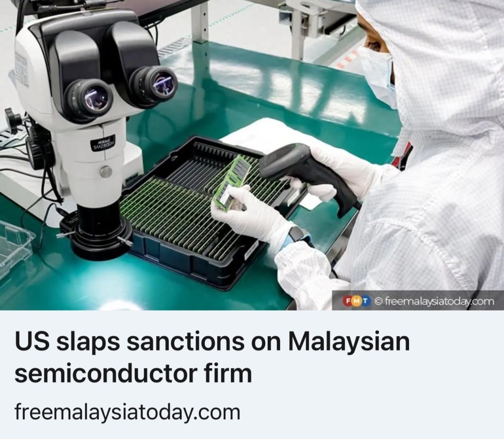 Read more here: https://www.freemalaysiatoday.com/category/nation/2024/06/03/us-slaps-sanctions-on-malaysian-semiconductor-firm/